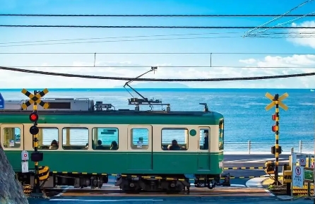 【最美丽的电车线路—江之岛电车体验(高校前)】江之岛至镰仓沿海的江之岛电铁是日本最值得坐饿的电车线路之一,已经有100多年历史的沿海电车线。日本动漫界对此情有独钟,《灌篮高手》中就有江之岛远景的特写。这里还是著名游戏《秋之回忆》中芦鹿岛的原始
