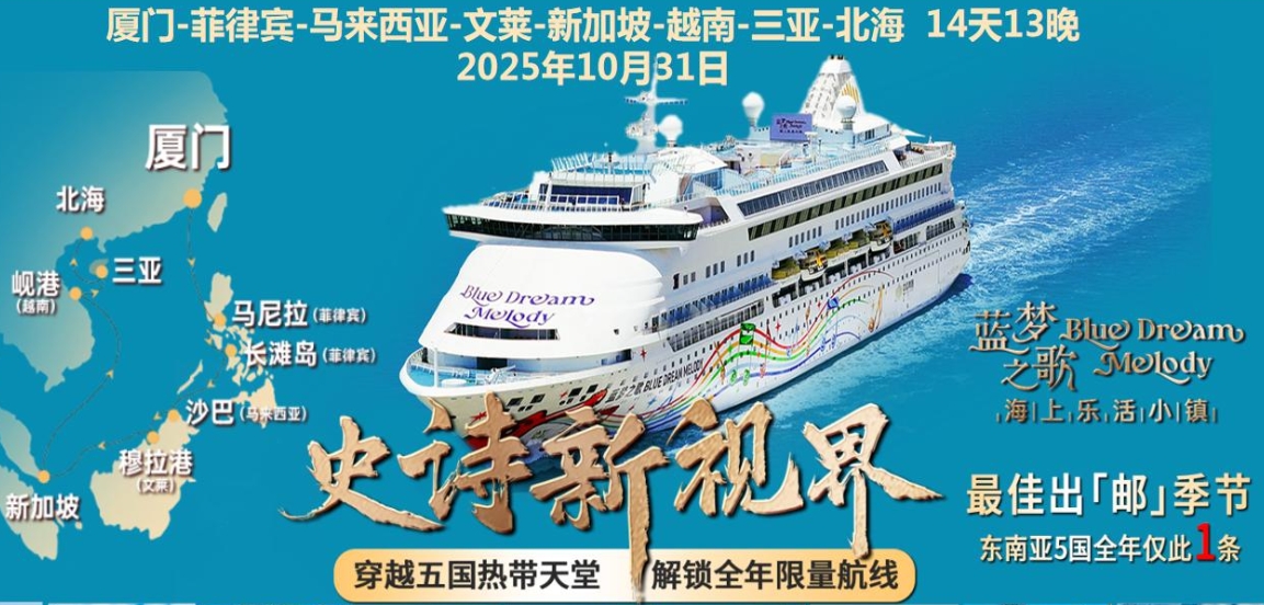 【蓝梦之歌邮轮】厦门-文莱-沙巴-长滩岛-苏比克-库里马奥-济州-上海 13天