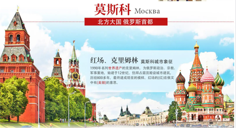 第八天:莫斯科 ✈北京 参考国际航班: CA910 SVO-PEK 1845-0655+1