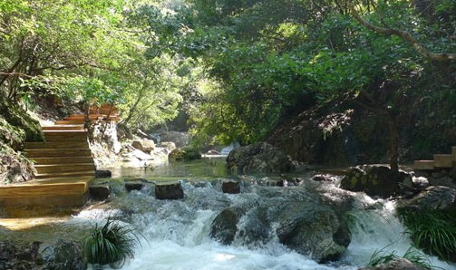 观赏完岱仙瀑布,步行至竹林小栈(约20分钟),沿途有无尾竹、豆腐坂、龙潭虎穴、浴仙池等景点,后乘坐景交车至主检票口。