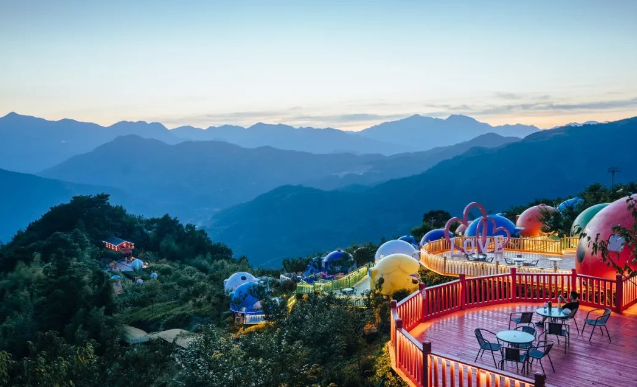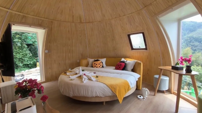 前往【七星瓢虫露营基地】在青山绿水间,红的、白的、蓝的、黄的…..七星瓢虫屋点缀其中,给绿色的山林增添 了许多活力,仿佛这里就是七星瓢虫温暖的家。