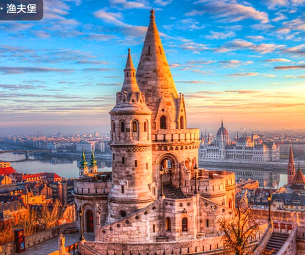 ◆【渔人城堡】(游览时间不少于30分钟)人堡是一座两层的白色建筑群,融合了新哥特、新罗马式以及匈牙利当地特色的建筑风格,被评为匈牙利令人印象最深的杰出建筑群。中世纪时,这里的渔民负责保卫这一段城墙,渔人堡由此得名。渔人堡素有布达佩斯瞭望台之称,可以鸟瞰布达佩斯全城美丽的风光。 |