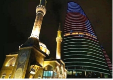 外观巴库的标志性建筑-【火焰塔(FLAME TOWER)】(外观约10分钟),他是由三个火焰形状的塔组成,每一个塔都有不同的功能,呈现三角形的形状。高达140米的巴库火焰塔将会成为周边地区的制高点,也是巴库天际线的亮点。