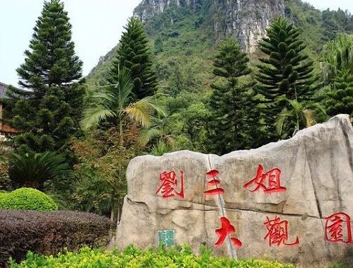 早餐后前往游览原汁原味、原生态、具有浓郁广西少数民族风情的《刘三姐》电影拍摄实景地—【刘三姐大观园】(游览时间约60分钟,不进那龙寨):景区内具有壮族特色的金蟾对歌台,造型奇特,令人大开眼界。高六米的大型汉白玉刘三姐塑像、硕大的多种石雕绣球、还原当年刘三姐与阿牛哥定情誓约的百年古榕、以及风雨长廊、壮寨干栏、瑶寨木楼、侗族鼓楼等均全国少见。再现电影《刘三姐》中莫府、阿牛家等场景,经典剧场中的“民族歌舞秀”让您亲身领略少数民族的独特风情。