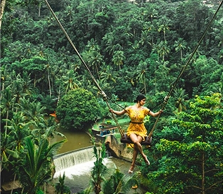 【乌布丛林网红秋千】位于乌布附近,这里是 ins 上所有人都为之疯狂的丛林秋千。园内有几座高低不同的秋千,高度不等(考虑到每人承受能力不同),荡出去,梯田层层叠叠,仿佛山水画一般地美。注:因各人对刺激事物承受能力不同,请量力而行!