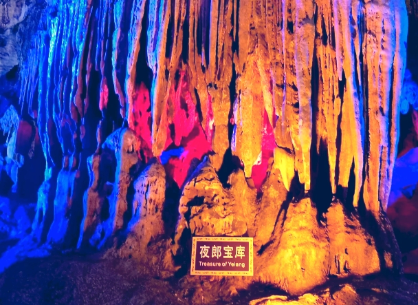 早餐后,前往国家级4A景区【夜郎洞】--与黄果树瀑布、石头寨相邻,是世界上喀斯特地貌集中的溶洞群景区,相传夜郎王曾居住于此而得名。溶洞群由夜郎洞、石花洞、蜂子岩洞等大大小小溶洞和天坑、燕峰斜崖等独特的喀斯特地貌共同组成。夜郎洞洞口为一巨大天桥,伏流从洞中涌出。溶洞高百米,分三层。第一层为水洞,二三层为旱洞。第一层水洞蜿蜒曲折,船行其上,但见两岸岩溶形态各异,石柱、石钟乳、石笋密布,蔚为壮观。第二层旱洞由5个大庭组成,依次布满人形石钟乳和石花、石柱,灯光下交相辉映,五彩斑斓。神奇的是一丛丛怒放的石“灵芝”,枝繁叶茂,从茎部到叶尖闪闪发光,颇为奇特。第三层旱洞高大开阔,洞中石笋密密匝匝,仿佛进入了原始森林,舒适惬意。大量岩溶发育似树,树冠伸展,荫及面广,灯光下五彩斑斓,有置于天外天的感觉。