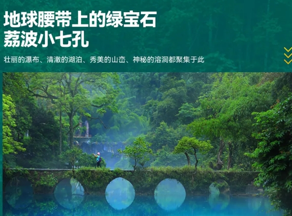 早餐后,乘车(约4H)前往荔波,游览世界自然遗产地,国家级AAAAA景区,中国最美丽的地方【小七孔】(不含电瓶车40元/人,保险10元/人,必须消费敬请自理)在宽仅1公里、长12公里的狭长幽谷里,集洞、林、湖、瀑、石、水多种景观于一体,玲珑秀丽,有“超级盆景”的和镶嵌在地球腰带上的绿宝石美誉。游览景区名字由来地【小七孔古桥】。欣赏景区灵动多姿的各色瀑布:起迭着【68级跌水瀑布】,顺贽而下,奔泻而去;【拉雅瀑布】布精巧醉人,水珠飞溅;【卧龙潭瀑布】银丝泻地,潭水色彩斑斑斓绚丽;【翠谷瀑布】在群峰紧锁中苍翠欲滴。感受赤足湿身乐趣的【水上森林】,清澈的水流冲刷着青石,行走于其中,宛若身临琼瑶仙池;【鸳鸯湖泛舟】(不含鸳鸯湖游船30元/人,非必须消费项目,自愿消费)—寻找一份爱情;妩媚而迷人的【响水河】更是贯穿了整个风景区。